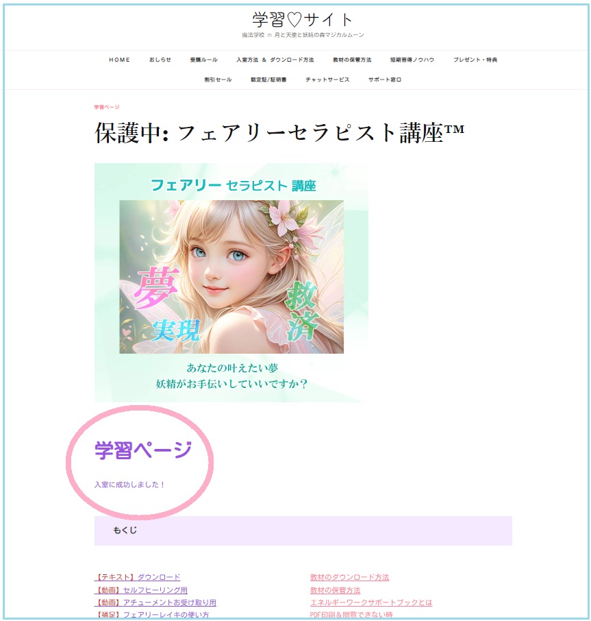 学習ページ(保護ページ)には
